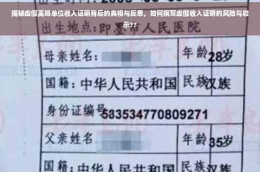 近年来,随着社会经济的发展,离婚现象愈发普遍,在离婚过程中,虚假单位收入证明逐渐浮出水面,成为公众关注的焦点,这不仅涉及到家庭利益纷争,更涉及到社会诚信体系的严重挑战,本文将探讨离婚虚假单位收入证明背后的真相,揭示其危害,并呼吁社会各界共同关注与反思。