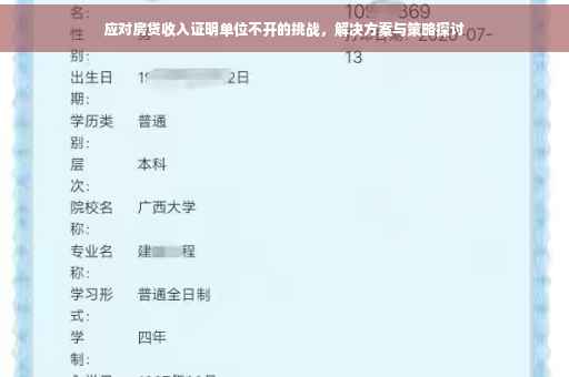 摘要:面对房贷收入证明单位不开的情况,可以采取多种应对策略。尝试与单位沟通,了解具体原因并争取支持。若沟通无果,可考虑提供其他证明收入的材料,如工资流水、个人所得税纳税证明等。寻求第三方机构出具收入证明也是一种解决方案。务必保持冷静,根据个人实际情况选择合适的方法应对困境。