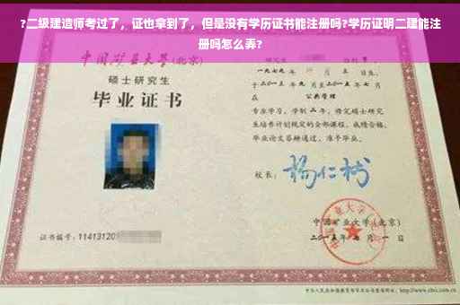 没有学历证书不能注册。二级建造师初始注册材料:1 、注册建造师初始注册申请表、汇总表(申请表上需另加附一寸彩照一张)和相应电子文档(电子文档通过网上发送给省级注册管理机构)。2 、申请人的资格证书、学历证书和身份证明复印件。3 、申请人与聘用单位签订的聘用劳动合同复印件。4 、聘用单位资质证书复印件。5 、申请初始注册同时申请多专业注册的,还应当提交注册建造师专业类别考试合格证明原件及复印件。6、持外省(市)颁发的二级注册建造师资格证书申请初始注册的,应当提交该省省级注册管理部门出具的尚未注册证明。扩展资料报名时间:考试报名工作一般集中在考试当年2月至3月进行,具体报名时间请查阅各省人事考试中心网站公布的报考文件。考试时间:2019年二级建造师考试时间为5月25-26日。合格标准:全国各个地区的合格分数不一样,应以当地人事考试网公布的信息为主。合格标准由各省根据实际情况自行确定,但不得高于总分的60%。二级建造师考试各科目合格标准情况初步统计为:《工程法规及相关知识》为45分~60分;《建设工程施工管理》为45分~72分;《专业工程管理与实务》根据科目、省份不同而不同。