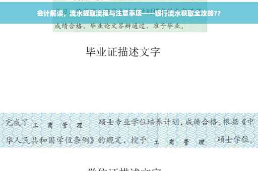 摘要:会计可以前往银行获取流水,流程包括提交申请、验证身份、等待审核、确认流水信息等环节。注意事项包括携带有效证件、注意保护账户安全、核对流水信息是否准确等。在获取流水过程中,会计应遵守银行规定,确保流程顺利进行。