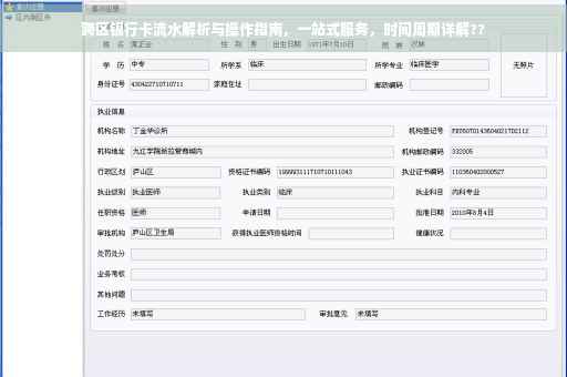 摘要:本文将介绍跨区银行卡拉流水的操作流程及所需时间。提供一站式解析和操作指南,帮助读者了解如何操作跨区银行卡拉流水,包括准备相关材料、操作步骤及注意事项等。让读者轻松掌握跨区银行卡拉流水的相关知识,以便更好地管理个人财务。