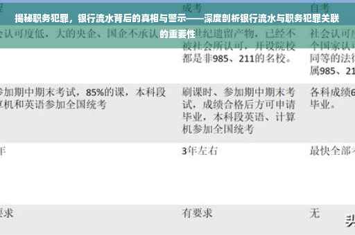 在当今社会,随着金融行业的快速发展,银行流水作为重要的金融交易记录,已经成为职务犯罪调查的关键切入点,本文将深入探讨职务犯罪与银行流水之间的关联,揭示银行流水背后的真相,并以此为警示,呼吁社会各界共同防范金融风险,维护金融秩序。