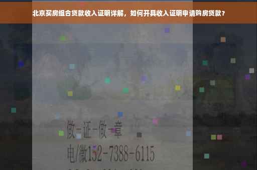 随着北京房价的日益攀升,越来越多的购房者选择通过贷款方式购买房屋,组合贷款因其较低的利率和灵活的贷款方式,成为许多购房者的首选,而在申请组合贷款过程中,收入证明是至关重要的一环,本文将详细介绍北京买房组合贷收入证明的相关内容,帮助购房者更好地了解和准备材料。