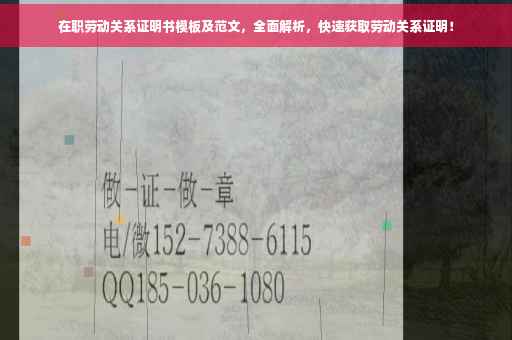 正确理解和使用在职劳动关系证明书对用人单位和员工都至关重要,用人单位应规范使用在职劳动关系证明书,提高人事管理的效率和准确性,希望通过本文的介绍,能帮助大家更好地理解和应用在职劳动关系证明书,保障双方的合法权益。