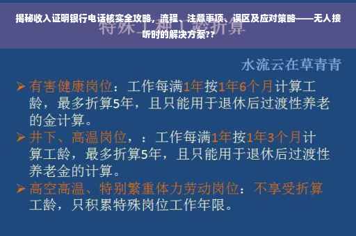 本文详细介绍了收入证明银行打电话核实的流程、注意事项以及常见误区,希望申请人在办理金融业务时,能够充分了解这一环节,避免陷入不必要的困扰,申请人应始终保持诚信,提供真实、准确的个人信息,以便顺利办理金融业务。