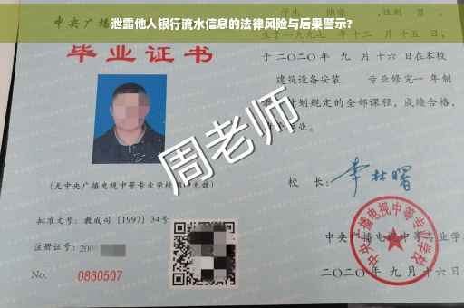 3. 承担法律风险:泄露他人银行流水信息可能触犯国家法律法规,导致法律责任,包括罚款、拘留甚至刑事责任。