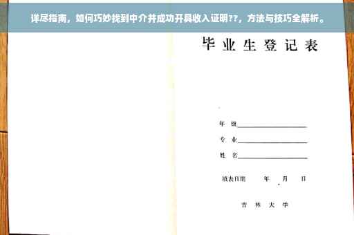 在当今社会,越来越多的人开始重视个人信用和收入证明的重要性,特别是在申请贷款、信用卡或是求职时,收入证明往往成为不可或缺的一环,有时候由于种种原因,我们无法直接通过正规途径获取收入证明,这时寻找专业中介便成为了一种选择,本文将为您详细介绍如何巧妙找到中介并成功开具收入证明,帮助您解决这一难题。