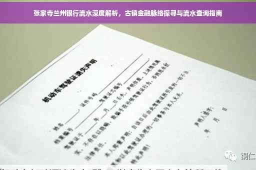 摘要:本文将深入解析张家寺古镇的金融脉络,重点关注兰州银行的流水情况。通过查询兰州银行流水,文章将探讨古镇金融的发展历程、现状以及未来趋势。本文将揭示古镇金融的运作机制,及其对当地经济发展的影响。
