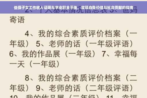 摘要:,,关于低保子女的工作收入证明撰写,需结合个人实际情况,突出学业与职业的平衡发展。这些子女在追求自我价值的同时,也致力于社会贡献。他们通过获取收入证明来展示自身工作能力,并确保学业不受影响。在撰写证明时,应强调个人学业成绩、职业技能以及如何在两者之间取得平衡,同时体现其对社会的贡献和责任感。这不仅是一份收入证明,更是低保子女实现个人价值和社会贡献的见证。