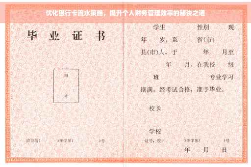 优化银行卡流水对于提升个人财务管理效率具有重要意义,通过合理规划收支、多样化收入来源、减少不必要的支出、合理使用信用卡以及定期分析银行卡流水等策略,可以有效优化银行卡流水,提高个人信用评级,便于财务管理,节省利息费用,在优化银行卡流水的过程中,还需注意保护个人隐私、防止诈骗并遵守相关法律法规。
