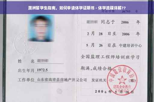 摘要:对于澳洲留学生来说,休学申请是一个重要环节。本文将指导你如何申请休学证明书。从准备相关材料到提交申请,每一步都详细解析,帮助你顺利完成休学手续。无论是面临个人困境还是健康原因,本文都能为你提供实用建议,确保你的留学之路更加顺利。跟随我们的指导,轻松应对休学申请问题。