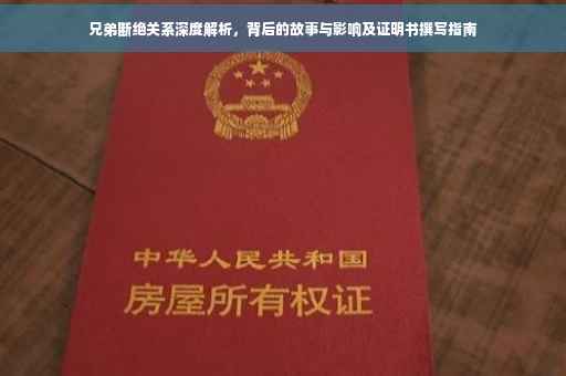 摘要:本篇内容主要围绕“兄弟断绝关系证明书”展开深度解析,探讨其背后的故事以及所带来的影响。文章将介绍如何撰写这样的证明书,同时分析在书写过程中可能涉及的关键点和注意事项。通过本文,读者将更好地理解这一行为背后的复杂情感和实际影响。