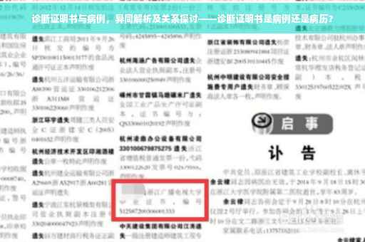 随着医疗行业的不断发展,人们对于医疗服务的需求也日益增长,在就医过程中,诊断证明书和病例是两个重要的文件,它们对于患者的治疗和管理起着至关重要的作用,很多人对于这两个概念存在混淆,不清楚它们之间的区别和联系,本文将详细解析诊断证明书和病例的异同,帮助读者更好地理解这两个概念。