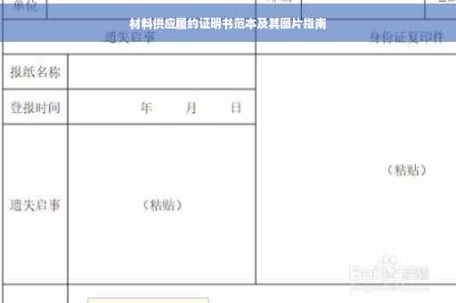 摘要:本证明书旨在确认材料供应的履约情况,包括供应商、项目名称、材料种类、数量、质量等详细信息。该证明书可作为供应商履约的凭证,确保双方权益得到保障。附带了材料供应履约证明书范本的图片,以便更好地理解和使用。该证明书对于材料采购和供应管理具有重要意义。