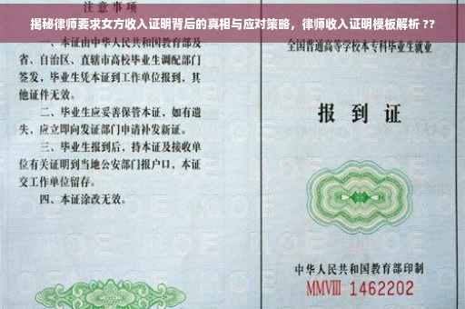 随着社会的进步和女性地位的提升,职业领域愈发多元化,众多女性在各个领域取得了杰出的成就,在某些特定情境下,律师要求女方提供收入证明的现象仍然存在,这背后隐藏着怎样的深层次原因?本文将对此进行深入的探讨,并为大家解析背后的法律逻辑和真相,同时提供应对策略。