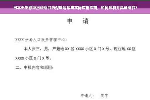 随着全球化进程的加速,跨国生活和工作的需求与日俱增,对于许多赴日本工作或学习的朋友来说,了解日本的法律法规和行政程序至关重要,日本无犯罪经历证明书(简称“无犯罪记录”)作为个人品行和社会信用的一种重要证明,在申请签证、就业、租房等方面扮演着关键角色,本文将详细介绍日本无犯罪经历证明书的申请流程、注意事项以及实际应用场景,帮助读者更好地理解和使用这一重要文件。