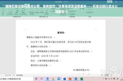 随着金融行业的快速发展,银行流水作为证明个人经济实力和商业交易往来的重要凭证,越来越受到社会各界的关注,在石家庄,不少银行流水公司应运而生,为广大民众提供便捷的服务,本文将详细介绍石家庄银行流水公司的相关业务操作、注意事项以及行业深度解析,帮助读者更好地了解和使用银行流水服务。