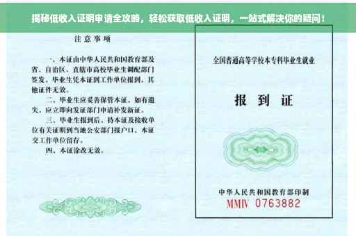 本文旨在向读者详细介绍低收入证明的申请流程、所需材料以及注意事项,通过本文,您将能够轻松了解如何获取低收入证明,以解决生活中的实际问题。