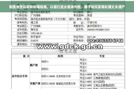 摘要:面对失去配偶的痛苦,处理财务问题至关重要。以查询银行流水为例,妻子在丈夫去世后需妥善处理银行流水查询等财务事宜。应了解相关法律法规,确保合法查询权利;同时保持冷静,详细核查流水明细,妥善管理共同财产,合理规划家庭经济未来。这一过程既是对逝去者的尊重,也是对生者未来生活的保障。