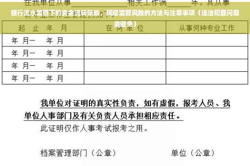 在当前金融市场复杂多变的大背景下,银行流水监管作为金融监管体系的核心环节,其重要性日益凸显,随着监管政策的不断升级,银行流水监管的力度也在逐步加强,在这样的大环境下,企业和个人如何有效规避银行流水监管风险,确保资金安全流转,成为一个迫切需探讨的课题,本文将对这一主题进行深入探讨,并提出一系列策略建议。