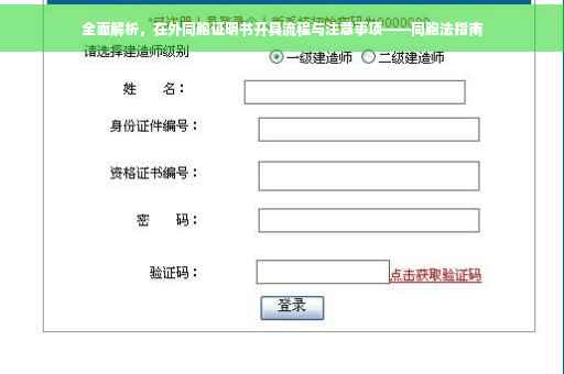 摘要:本文将详细解析在外同胞证明书的开具流程,包括准备相关材料、填写申请表格、递交申请并等待审核等步骤。还将介绍注意事项,如确保材料真实有效、注意填写规范、遵守当地法律法规等。本文旨在帮助在外同胞顺利办理证明书,避免不必要的麻烦。关键词:在外同胞、证明书、开具流程、注意事项。