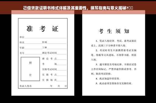 己偿贷款证明书是证明个人信用状况的重要凭证,对于申请贷款、办理信用卡等金融业务具有重要意义,本文详细介绍了己偿贷款证明书的格式、作用、注意事项和重要性,希望能够帮助读者更好地了解如何撰写一份合格的己偿贷款证明书,在实际生活中,个人应重视维护自己的信用记录,为未来的金融活动奠定良好的基础。