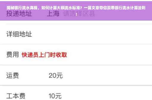 摘要:本文将介绍银行流水的计算方法和标准,解释银行流水如何被视为大额以及如何计算。通过阅读本文,您将了解银行流水的真相,包括银行流水大小的评估标准和相关计算方法。帮助读者更好地理解银行流水的重要性及其在实际金融交易中的应用。