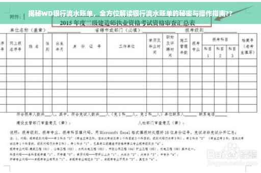 随着金融市场的快速发展,银行业务日益普及,越来越多的人开始关注自己的财务状况,作为个人或企业用户,在办理贷款、信用卡等金融业务时,银行往往会要求我们提供流水账单,本文将详细介绍WD银行的流水账单,帮助读者从入门到精通全方位了解这一重要概念。