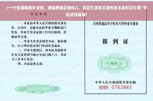 并不觉得文凭是最主要的,首先,批评这个词就说明了一切,谁都能批评谁,当然,有没有道理就另说,然后,批评中医,这不排除那个初中文凭的人对中医有自己独特的看法,这当然可以讨论,中医本身也是有不好之处,收到批评并没有过错。
