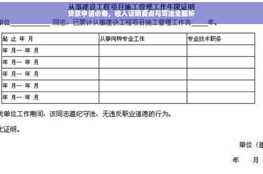 收入证明是借款人向贷款机构提供的一种证明文件,用于证明其具有一定的还款能力,这份证明通常来自雇主,详细列明借款人的职务、工作时间以及收入情况,在贷款申请过程中,收入证明起着至关重要的作用,贷款机构通过收入证明评估借款人的还款能力,从而决定是否批准贷款申请,一个稳定的、足够的收入能大大提高贷款申请的成功率。