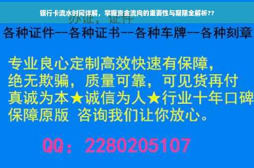 摘要:本文将详细解析银行卡流水时间,让读者了解资金流向的重要性及其期限。通过本文,您将了解到什么是银行卡流水时间,如何查看和分析自己的资金流向,以及为何流水时间对您的财务规划至关重要。本文还将提供相关的知识和技巧,帮助您更好地管理个人财务和资产。