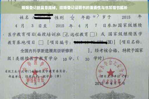 摘要:婚姻登记迎来新篇章,结婚登记证明书在其中扮演着重要角色。这份证明不仅具有法律效力,还体现了婚姻双方的承诺与责任。证明书写错一项可能会引发不必要的麻烦。在登记时务必仔细核对各项信息,确保准确无误。正确填写结婚登记证明,既是对自身权益的保障,也是对婚姻责任的体现。