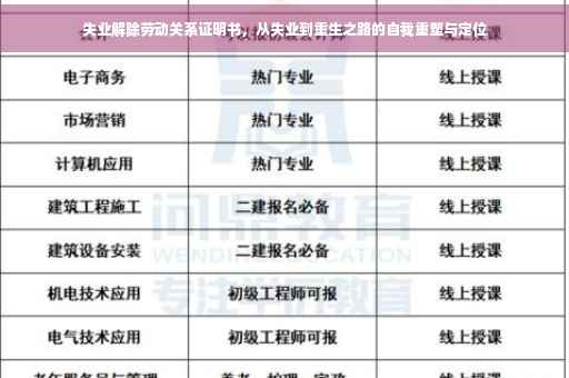 在当今社会,失业已成为不少劳动者面临的困境,面对失业,除了寻求新的就业机会外,我们还需要关注一个重要环节——解除劳动关系证明书,这一纸证明不仅仅是一份简单的文件,更是我们重新定位自己、迈向新生活的起点,本文将围绕这一主题展开,探讨失业解除劳动关系证明书的重要性、办理流程以及如何利用这一机会重新出发。