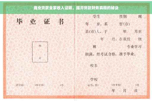 在当今社会,随着经济的发展和金融市场的繁荣,商业贷款已成为许多家庭实现各种需求的重要手段,在申请商业贷款时,银行和其他金融机构通常需要借款人提供全家收入证明,以确保借款人的还款能力,本文将详细介绍商业贷款全家收入证明的相关内容,帮助读者更好地了解这一过程中的财务真相。