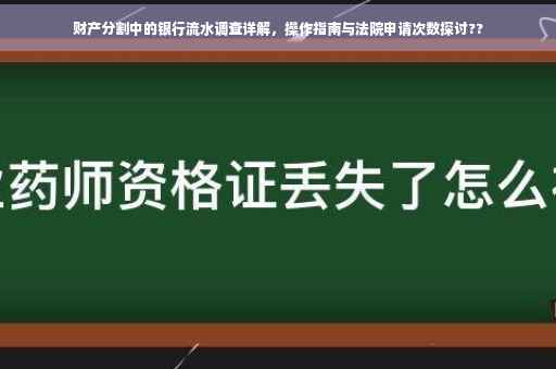 随着社会的快速发展,财产分割问题愈发受到人们的关注,在离婚、遗产继承等情境下,如何查清银行流水成为了财产分割中的关键环节,本文将详细介绍财产分割中银行流水的调查方法、注意事项及相关法律条款,以助读者更好地了解这一复杂过程。