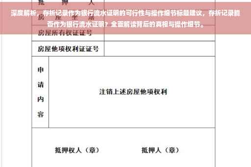 存折记录可以作为银行流水证明,但需要满足一定条件。本文将深度解析存折作为流水证明的可行性,并探讨背后的真相与细节。关于存折是否可以打印流水,本文将进行详尽解答。通过阅读本文,您将了解存折流水证明的具体操作细节及其有效性。