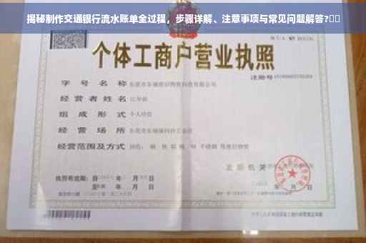 摘要:本文将详细介绍制作交通银行流水账单的全过程,包括步骤、注意事项和常见问题解答。读者将了解如何操作以获取准确的流水账单,包括必要的信息和细节。本文旨在为需要制作交通银行流水账单的人提供清晰的指导和帮助。