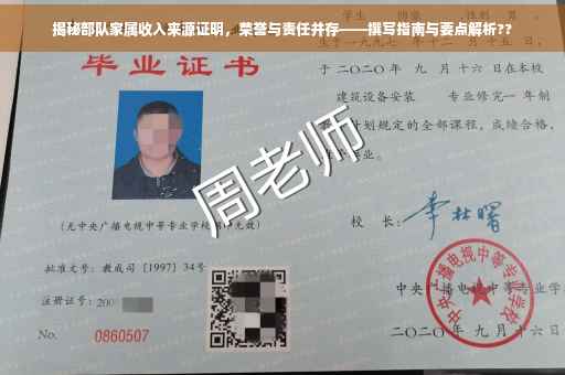 摘要:本文将探讨部队家属的收入来源证明,揭示其中的荣誉与责任并存的现象。文章将介绍如何撰写部队家属的收入证明,包括收入的主要来源和证明文件的格式要求等内容。作为军人背后的支持者,部队家属的荣誉与责任同样重要,他们的收入来源证明不仅是经济生活的需要,更是对军人职业的一种认可和尊重。