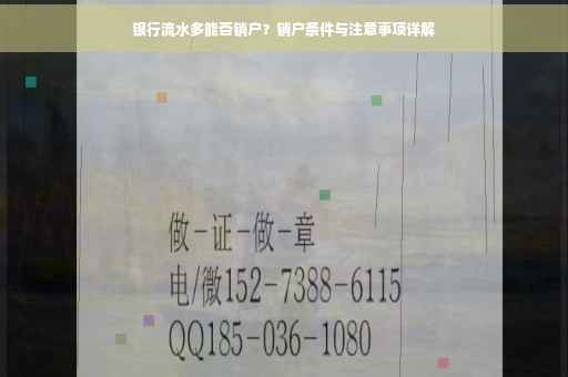 摘要:银行流水多是否能销户因银行政策而异。一般而言,银行流水多不会成为销户的决定性因素。销户需满足银行规定的条件,如债务清偿、无未签收的票据等。在销户前,客户应注意提前清偿账户欠款,确保账户资金安全转移,并咨询银行工作人员了解详细销户条件和流程。银行流水作为参考,不会单独导致销户。