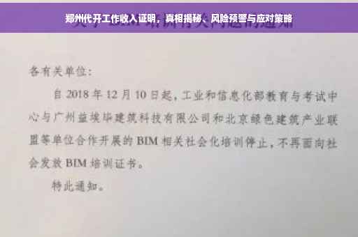 随着互联网的发展,信息流通日益便捷,个人收入证明作为求职、贷款等场合的重要资料,有时因各种原因无法提供真实的证明文件,在此背景下,一些不法分子利用市场需求,提供代开工作收入证明的服务,本文将深入探讨郑州代开工作收入证明的现象,揭示背后的真相、风险及应对之策。