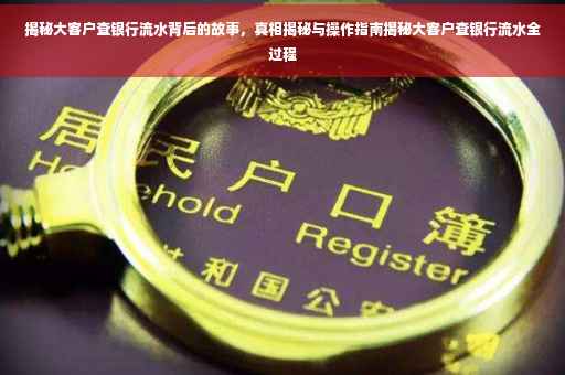 揭秘大客户查银行流水背后的故事,揭示真相并提供操作指南。本文将介绍大客户如何查询银行流水,包括步骤、注意事项等。通过本文,读者可以了解到银行流水的重要性以及查询过程中可能遇到的挑战和解决方法。本文还将提供一些有用的建议和技巧,帮助读者更好地管理自己的财务和资产。