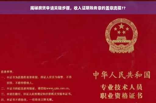 摘要:申请房贷过程中,办房贷收入证明账务章是重要的一环。本文将揭秘这一关键步骤的详细流程,包括账务章如何盖章。读者将了解到,通过正确办理收入证明并加盖账务章,能够顺利申请房贷。本文旨在为即将申请房贷的人们提供有用的指导,确保流程顺利进行。