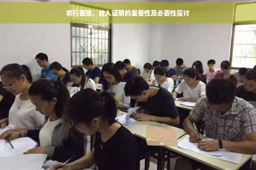 摘要:农行面签过程中,收入证明具有不可或缺的重要性。收入证明是银行评估个人信用和还款能力的重要依据之一。在申请农行面签时,提供真实有效的收入证明能够增加申请人的信用度,提高审批通过的几率。准备充分的收入证明材料是成功办理农行面签的关键之一。