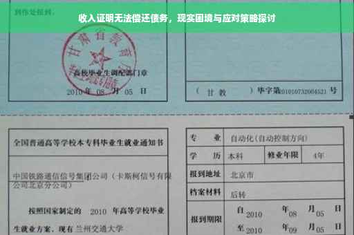 在当前社会,经济压力不断增大,许多人因收入不足以偿还债务而陷入困境,收入证明作为评估个人经济状况和偿还债务能力的重要凭证,在申请贷款、信用卡等金融产品时发挥着关键作用,一旦收入无法覆盖债务,个人和家庭可能面临严重的财务危机,本文将深入探讨收入证明与无法偿还债务之间的关系,分析现实困境,并提出应对策略。