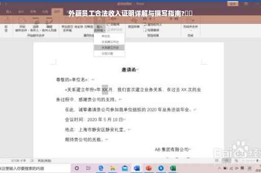 摘要:本文将详细介绍外籍员工合法收入证明的写作要点和注意事项。内容包括收入证明的基本格式、必要信息、注意事项等。通过本文,外籍员工可以了解如何正确撰写合法收入证明,确保个人权益得到保障。文章旨在帮助外籍员工避免因收入证明不当而引发的法律问题。
