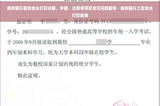 摘要:本文将详细解析南京银行薪资流水打印的步骤,包括注意事项和常见问题解答。读者将了解如何顺利获取南京银行的工资流水,包括打印前的准备、操作流程中的关键点以及可能遇到的问题和解决方案。帮助个人和企业更好地管理财务和证明收入情况。