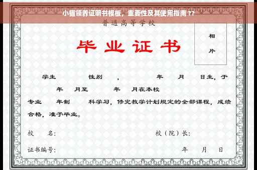 随着生活水平的提高,宠物领养成为越来越多人的选择,小猫作为最受欢迎的宠物之一,其领养过程的重要性也日益凸显,为了确保小猫的健康成长和领养者的合法权益,一份规范的小猫领养证明书至关重要,本文将为大家详细介绍小猫领养证明书模板及其相关内容,旨在帮助大家更好地了解和规范宠物领养行为。