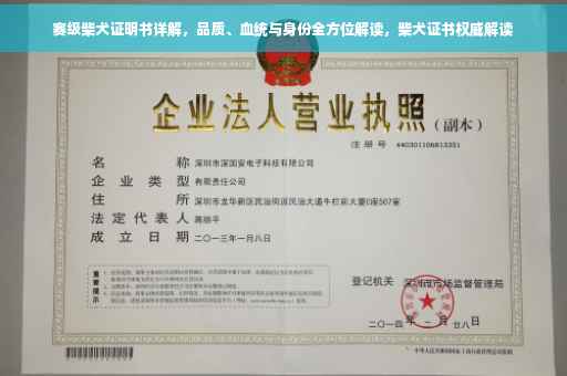 赛级柴犬证明书是一份证明柴犬品质、血统和身份的权威文件,这份证书通常由权威的犬业机构或专业的犬只鉴定机构颁发,证明该柴犬具有优秀的血统、品质、健康状况和适应性,赛级柴犬通常经过严格的筛选和评估,符合一定的标准和要求,因此具有较高的品质和纯度。