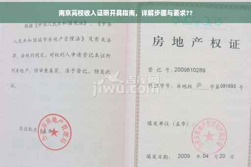 摘要:本文将详细介绍南京高校收入证明的开具流程。内容包括了解开具收入证明的必要性,准备相关证件和资料,前往所在高校相关部门进行申请,填写申请表格,等待审核和签发。南京高校收入证明是证明个人收入状况的重要文件,对于贷款、租房等方面具有关键作用。本文旨在帮助读者顺利完成收入证明的开具,顺利应对各种需求。