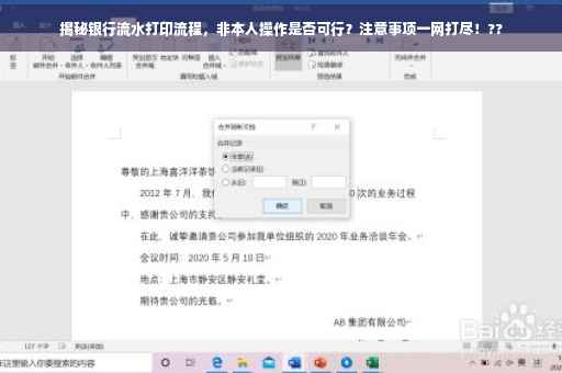 摘要:关于银行打印流水是否必须本人操作,不同银行规定可能不同。本人操作更为稳妥。详细流程包括了解银行规定、准备相关证件、前往银行柜台或自助终端打印等。注意事项包括保护个人信息,确认流水真实性,留意办理时间和费用等。建议在操作前咨询银行工作人员,以确保流程顺利进行。
